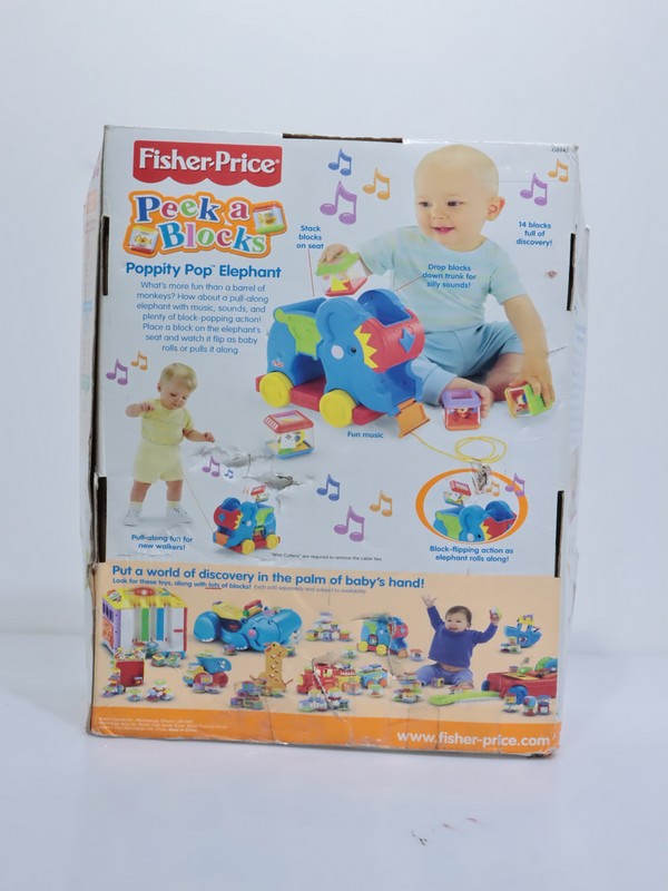 juguete electrónico de arrastre para bebés mayores de 12 meses. Cuenta con acción de "pop" para los bloques y reproduce música y sonidos de circo.
