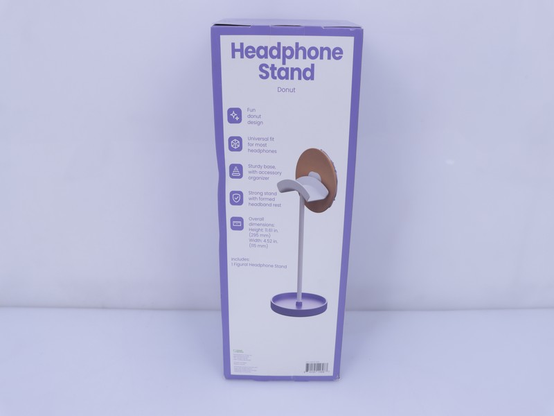 Un soporte para audífonos en forma de dona sobre un poste con una base redonda